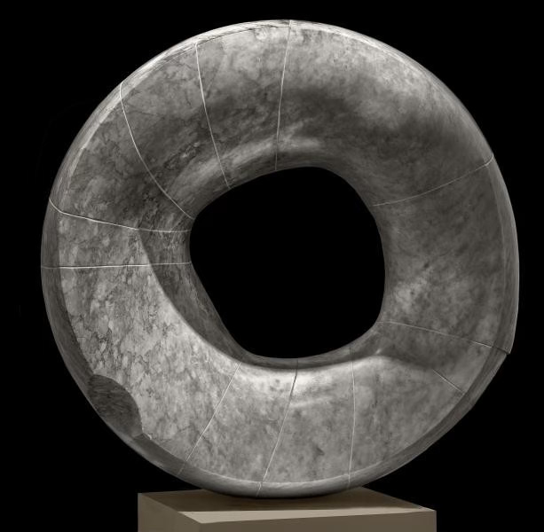 Grey Sun, a 1967 sculpture in bianco p marble by artist Isamu Noguchi